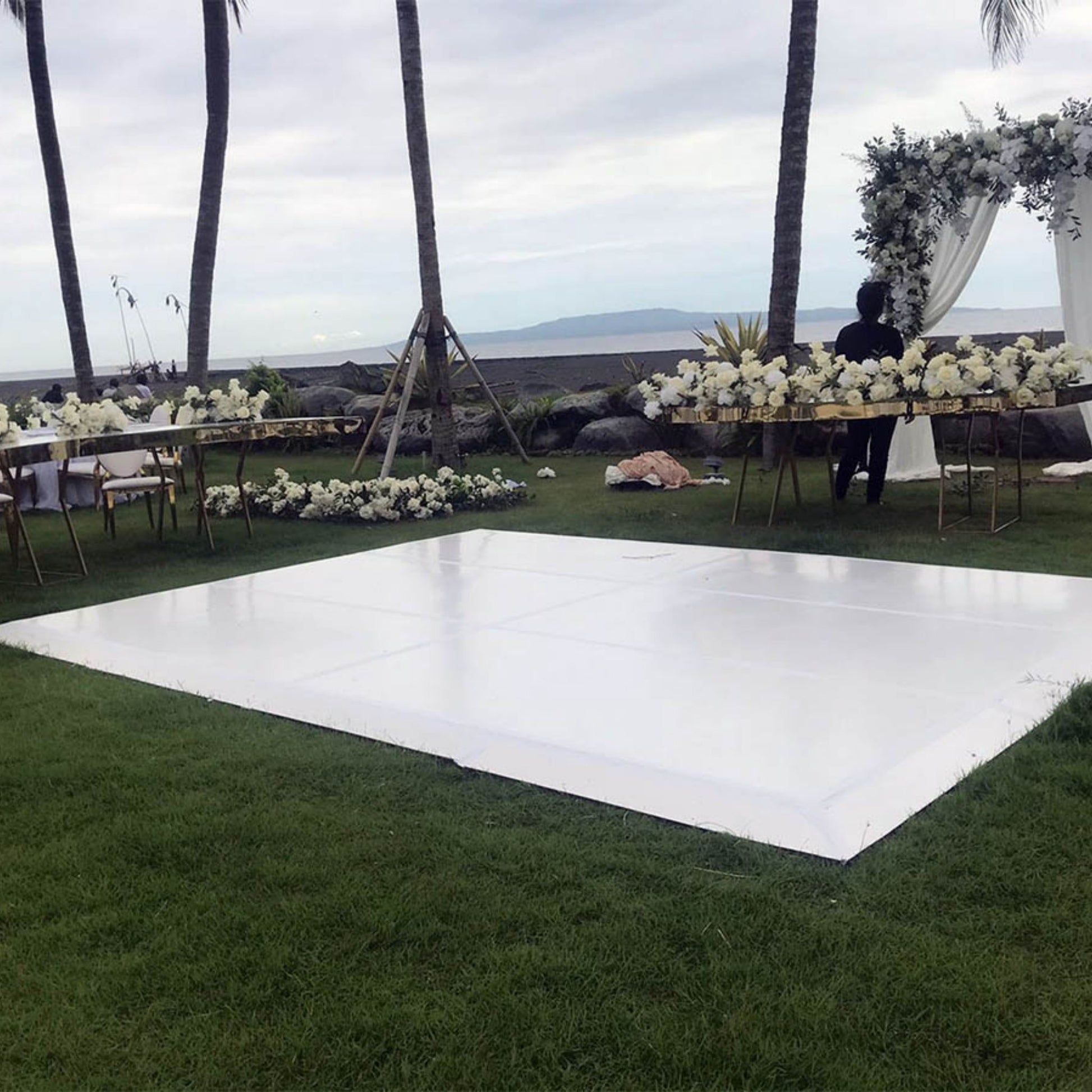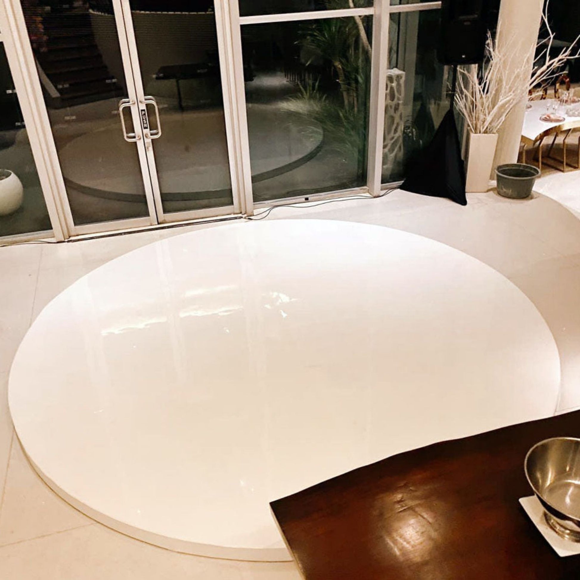 - 1 set dance floor 3 x 3m in square or round (finishing options white melamine or Wooden)