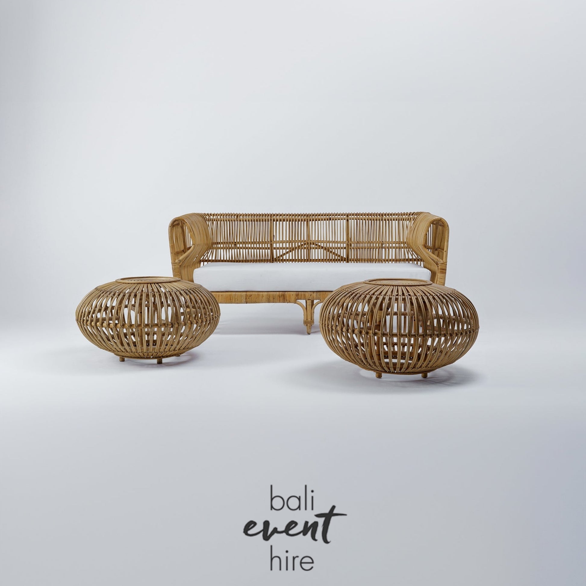 A stunning sofa set, handwoven by our dear friends in Canggu in soft, blonde rattan.